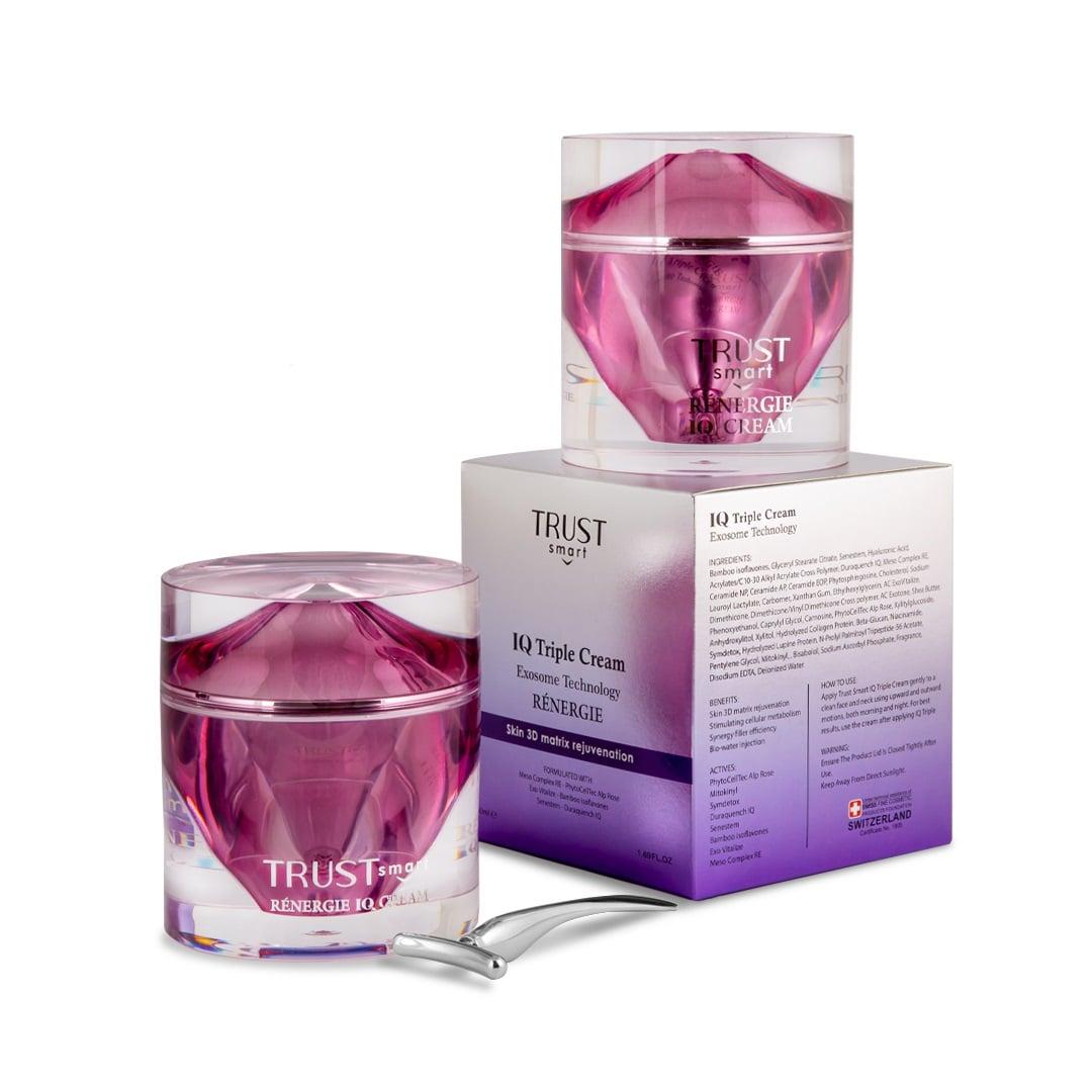 این ترکیب در حقیقت با استفاده از تکنولوژی انتقالی اگزوزوم، بستری را برای انتقال ترکیبات به داخل سلولهای پوستی فراهم کرده و به این ترتیب اصطلاحا به بیدار شدن سلولهای پوستی و افزایش فعالیت و تکثیر آنها کمک میکند. اگزوزومها حامل ترکیبات پپتیدی موثر در احیای سلولهای پوستی و بازسازی پوست هستند که با استفاده از دو لایه لیپیدی خود وارد سلولهای پوستی میشوند و در عمق مشخصی از پوست تاثر خود را بر جای میگذارند. این اگزوزوم با استفاده در فرمولاسیون کرم سهگانه هوشمند تراست اسمارت با تحریک ساخت سلولهای جدید، چین و چروکهای پوست را برطرف کرده و به حفظ سلامت و جوانی پوست کمک میکند.
