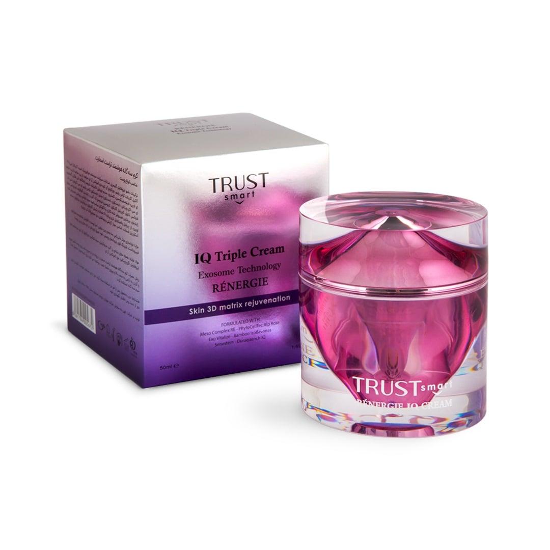 بنابراین استفاده از محصولات مراقبتی که سد دفاعی پوست را تقویت میکنند و با افزایش تکثیر سلولهای پوستی کشسانی پوست را بهبود میبخشند، یکی از بهترین راهکارها برای توقف و جلوگیری از ایجاد چین و چروکهای پوستی است. این محصولات مراقبتی علاوه بر افزایش استحکام و جوانسازی ماتریکس سه بعدی پوست، خواص آبرسانی و روشن کنندگی برای پوست دارند. کرم سه گانه هوشمند تراست اسمارت در حقیقت محصولی سه در یک هست که در قالب یک محصول تهیه شده و در کنار اثربخشی در زمینه جوانسازی، روشن کنندگی پوست و آبرسانی، دارای خواص آنتی اکسیدانی و مراقبت از پوست در برابر آلودگی هاست و با جمع کردن منافذ باز پوستی موجب بهبود ظاهر و حفظ سلامت پوست می شود.